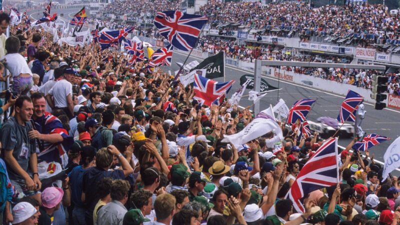 the scream of Jaguar 7-litre V12s is appreciated by the travelling support
